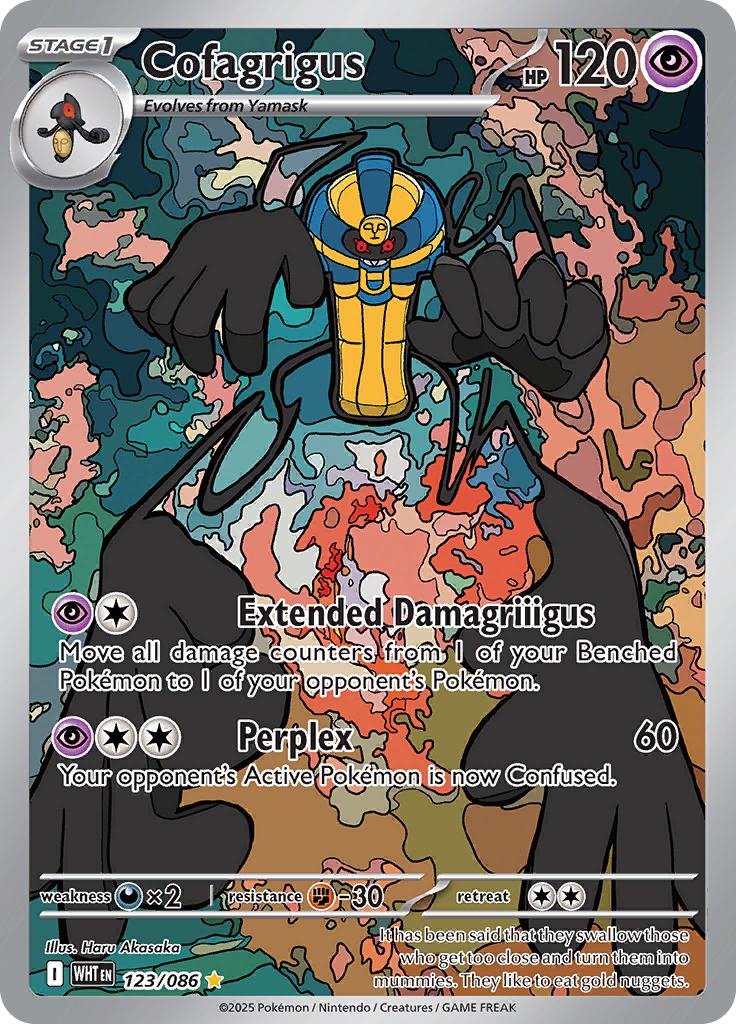 | Kaufen? | Kaufen Sie Ihre Cofagrigus Pokemon-Karte aus dem White Flare-Erweiterung. |