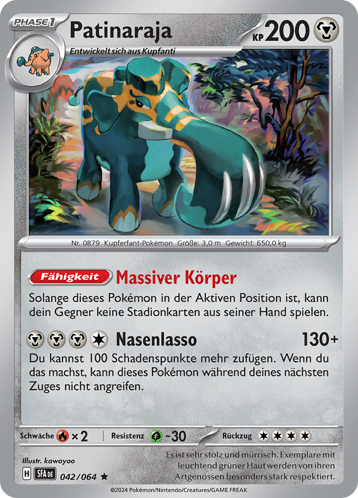 | Alle Karten | Sehen Sie alle Patinaraja-Pokémonkarten in einer Übersicht. |