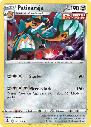 | Kaufen? | Kaufen Sie Ihre Patinaraja Pokemon-Karte aus dem Reisegefahrten-Erweiterung. |