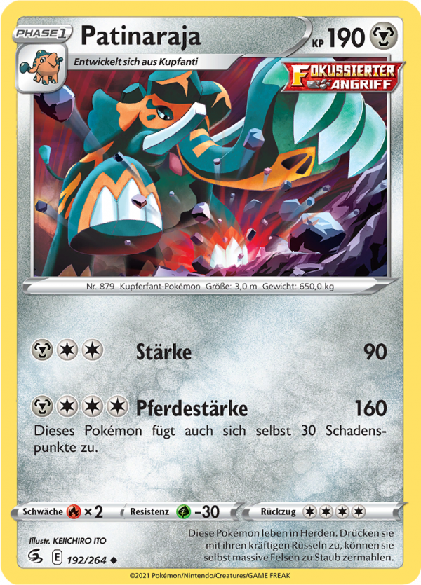 | Kaufen? | Kaufen Sie Ihre Patinaraja Pokemon-Karte aus dem Fusionsangriff-Erweiterung. |