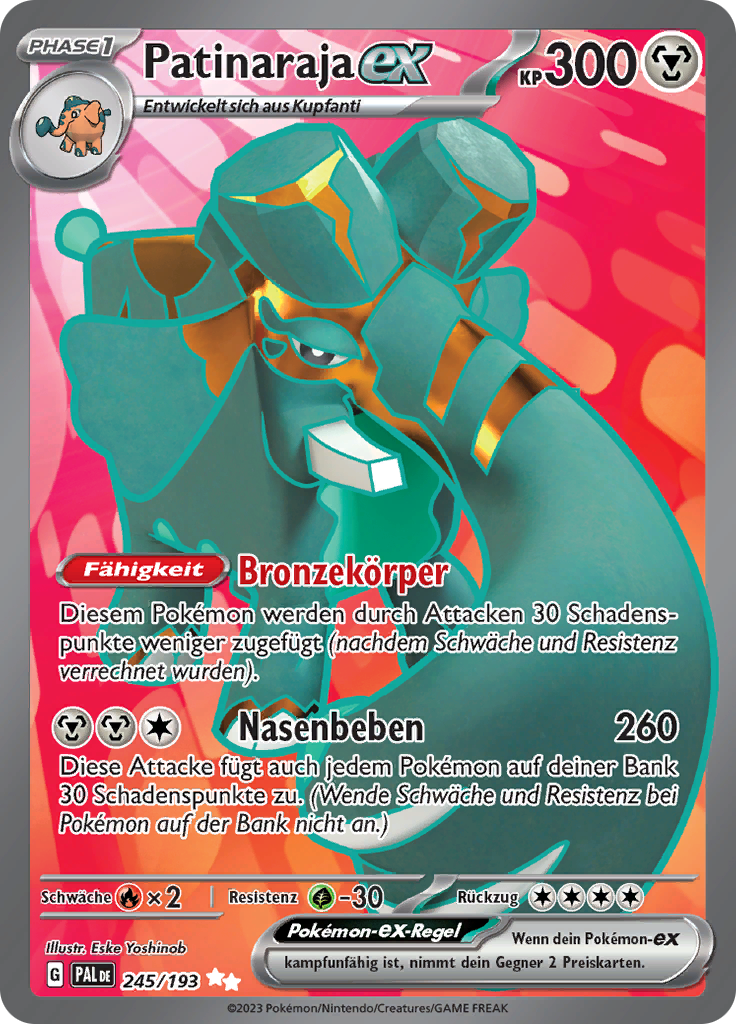 | Kaufen? | Kaufen Sie Ihre Patinaraja Pokemon-Karte aus dem Entwicklungen in Paldea-Erweiterung. |
