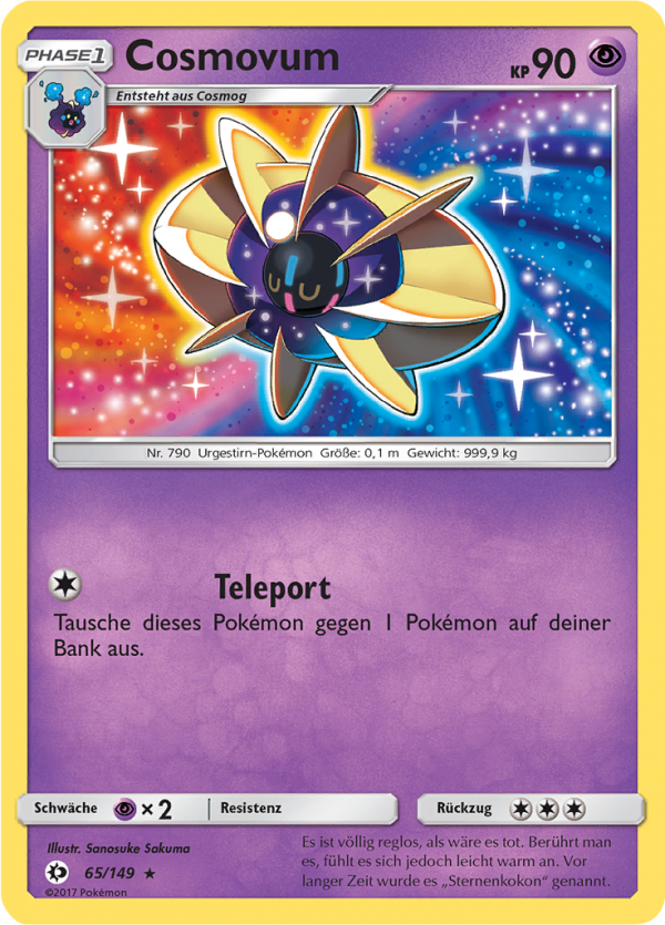 | Kaufen? | Kaufen Sie Ihre Cosmovum Pokemon-Karte aus dem Sonne & Mond-Erweiterung. |