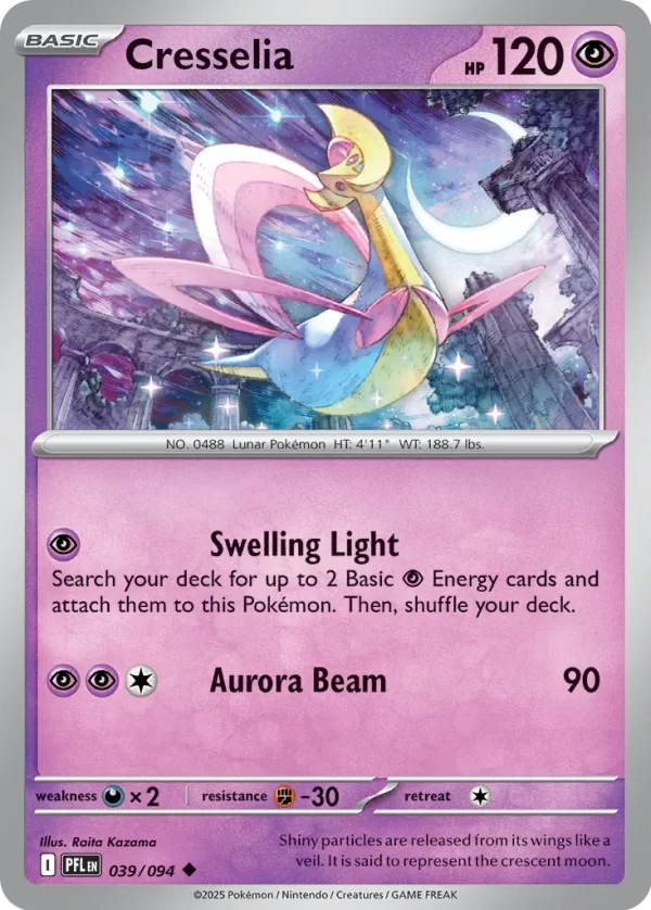 | Kaufen? | Kaufen Sie Ihre Cresselia Pokemon-Karte aus dem Phantasmal Flames-Erweiterung. |