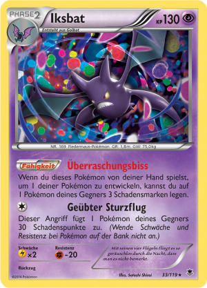 | Alle Karten | Sehen Sie alle Iksbat-Pokémonkarten in einer Übersicht. |