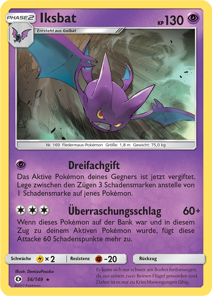 | Kaufen? | Kaufen Sie Ihre Iksbat Pokemon-Karte aus dem Sonne & Mond-Erweiterung. |