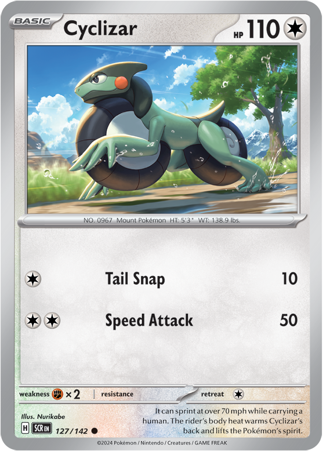 | Kaufen? | Kaufen Sie Ihre Cyclizar Pokemon-Karte aus dem Stellar Crown-Erweiterung. |
