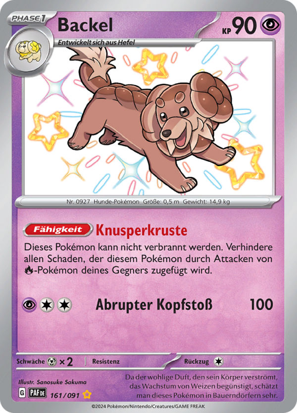 | Kaufen? | Kaufen Sie Ihre Backel Pokemon-Karte aus dem Paldeas Schicksale-Erweiterung. |