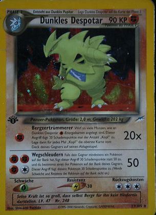 | Kaufen? | Kaufen Sie Ihre Dunkles Despotar Pokemon-Karte aus dem Neo Destiny-Erweiterung. |