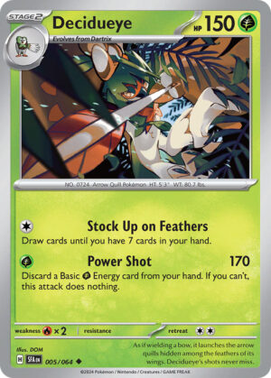| Kaufen? | Kaufen Sie Ihre Decidueye Pokemon-Karte aus dem Cosmic Eclipse-Erweiterung. |