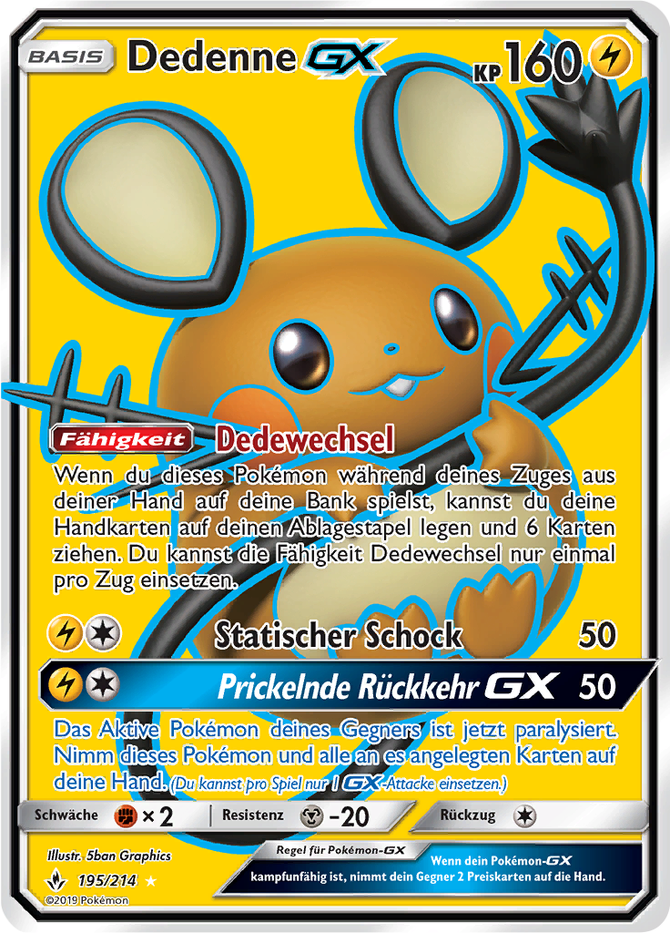 | Kaufen? | Kaufen Sie Ihre Dedenne-GX Pokemon-Karte aus dem Kräfte im Einklang-Erweiterung. |