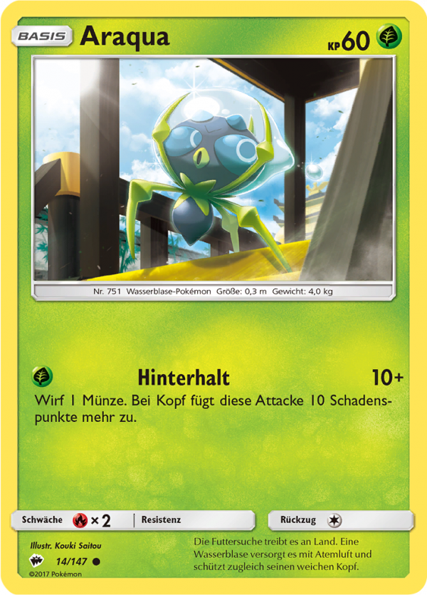 | Alle Karten | Sehen Sie alle Araqua-Pokémonkarten in einer Übersicht. |