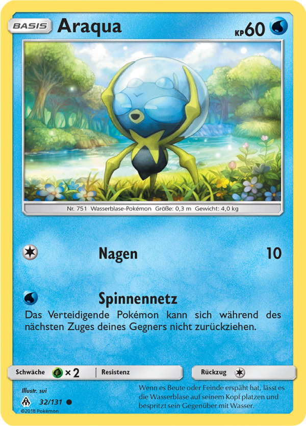 | Alle Karten | Sehen Sie alle Araqua-Pokémonkarten in einer Übersicht. |