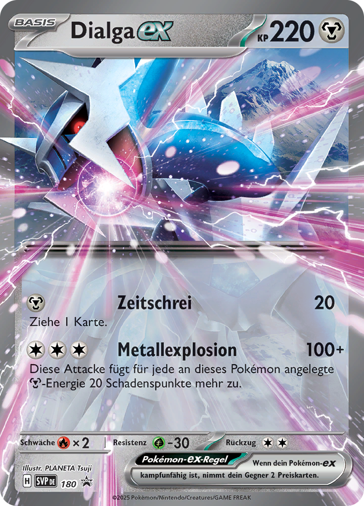 | Kaufen? | Kaufen Sie Ihre Dialga-ex Pokemon-Karte aus dem Karmesin & Purpur Promos-Erweiterung. |