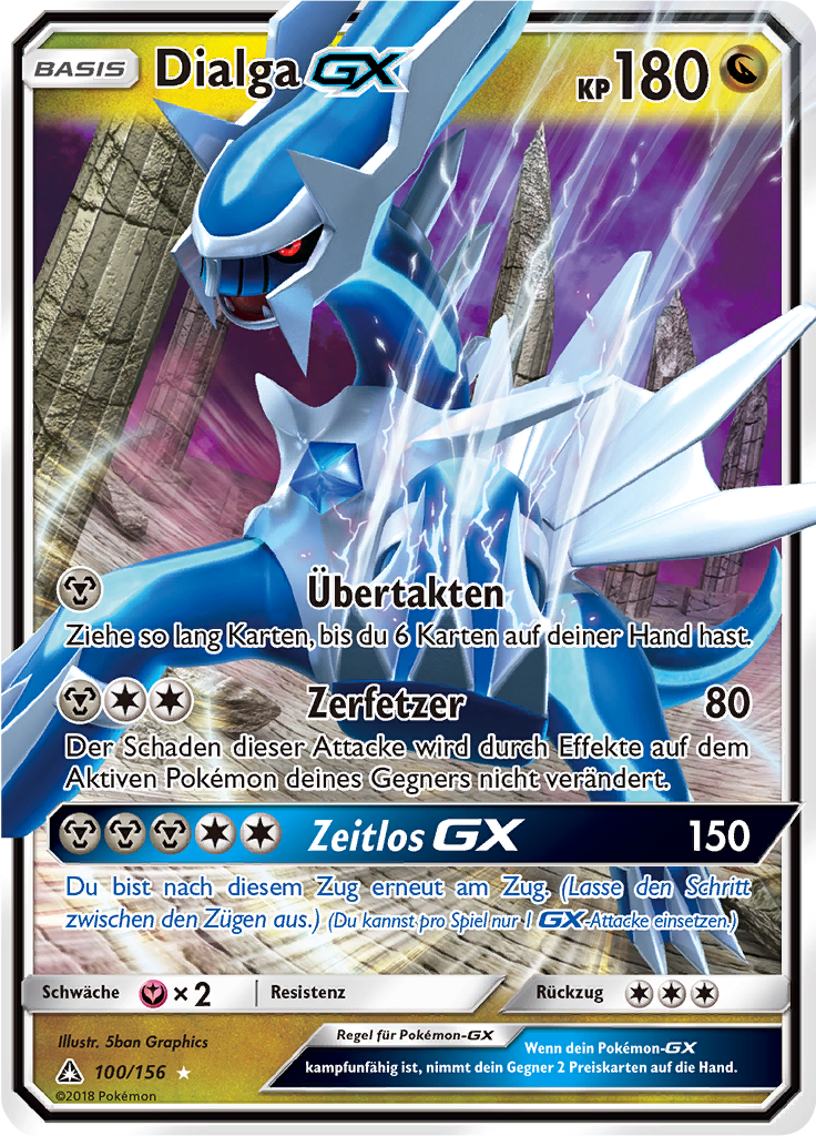 | Kaufen? | Kaufen Sie Ihre Dialga-GX Pokemon-Karte aus dem Ultra-Prisma-Erweiterung. |