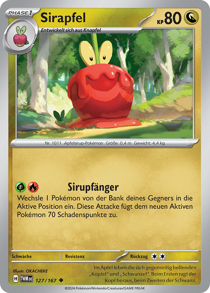 | Kaufen? | Kaufen Sie Ihre Sirapfel Pokemon-Karte aus dem Maskerade im Zwielicht-Erweiterung. |