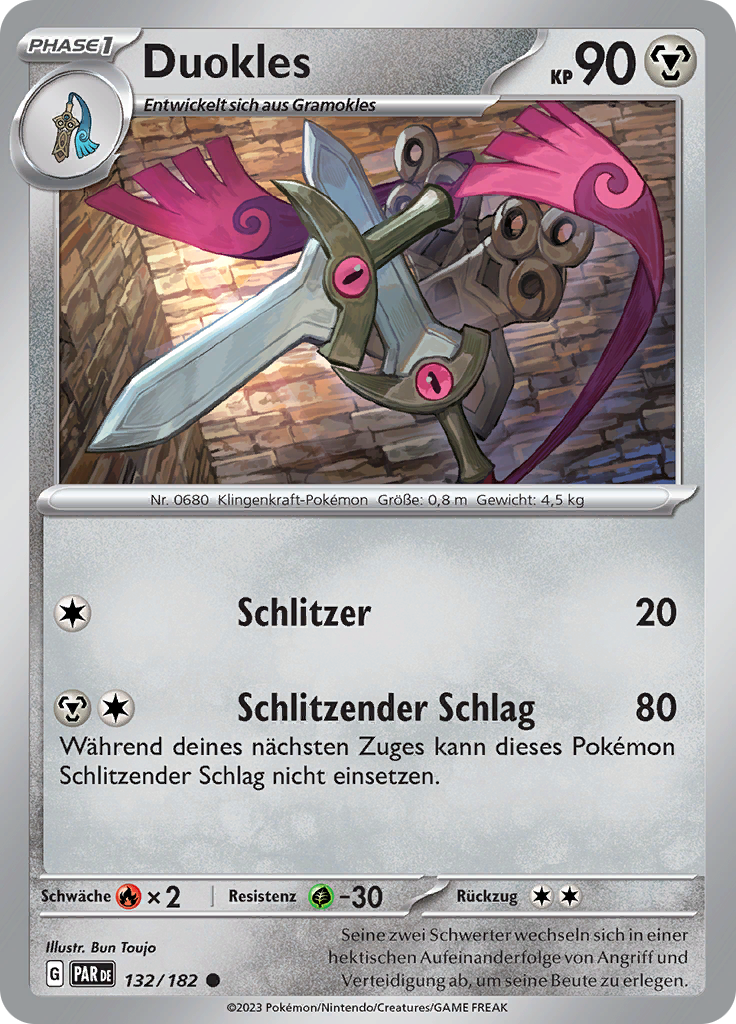 | Kaufen? | Kaufen Sie Ihre Duokles Pokemon-Karte aus dem Paradoxrift-Erweiterung. |