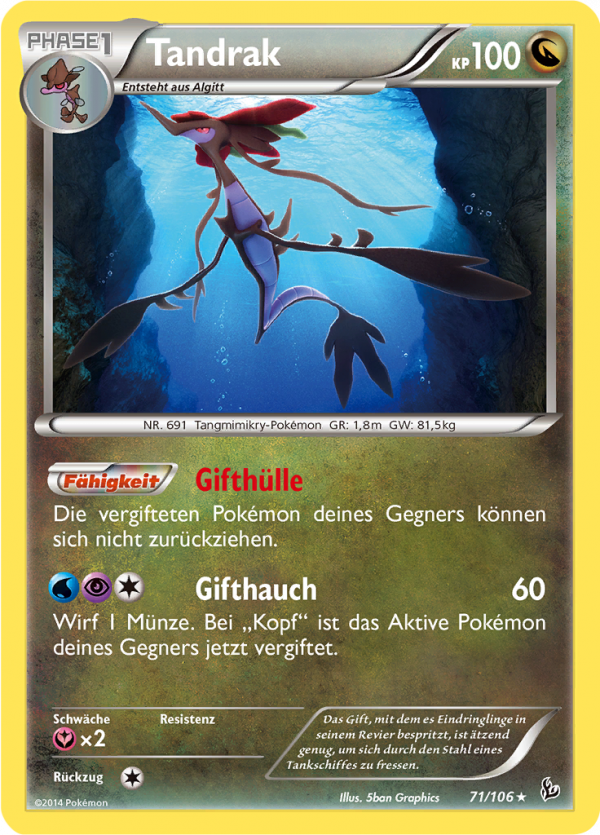 | Kaufen? | Kaufen Sie Ihre Tandrak Pokemon-Karte aus dem Flammenmeer-Erweiterung. |
