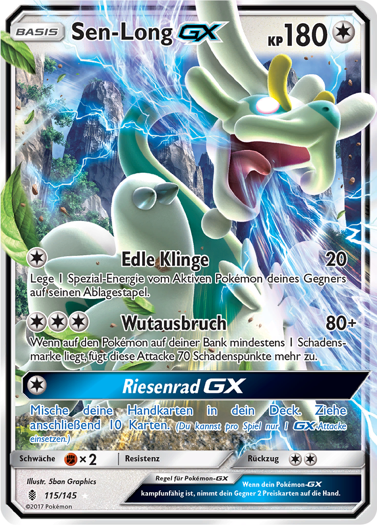 | Kaufen? | Kaufen Sie Ihre Sen-Long-GX Pokemon-Karte aus dem Stunde der Wächter-Erweiterung. |