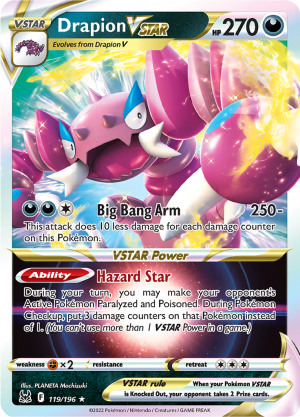 | Kaufen? | Kaufen Sie Ihre Drapion VSTAR Pokemon-Karte aus dem Lost Origin-Erweiterung. |