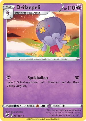 | Alle Karten | Sehen Sie alle Drifzepeli-Pokémonkarten in einer Übersicht. |