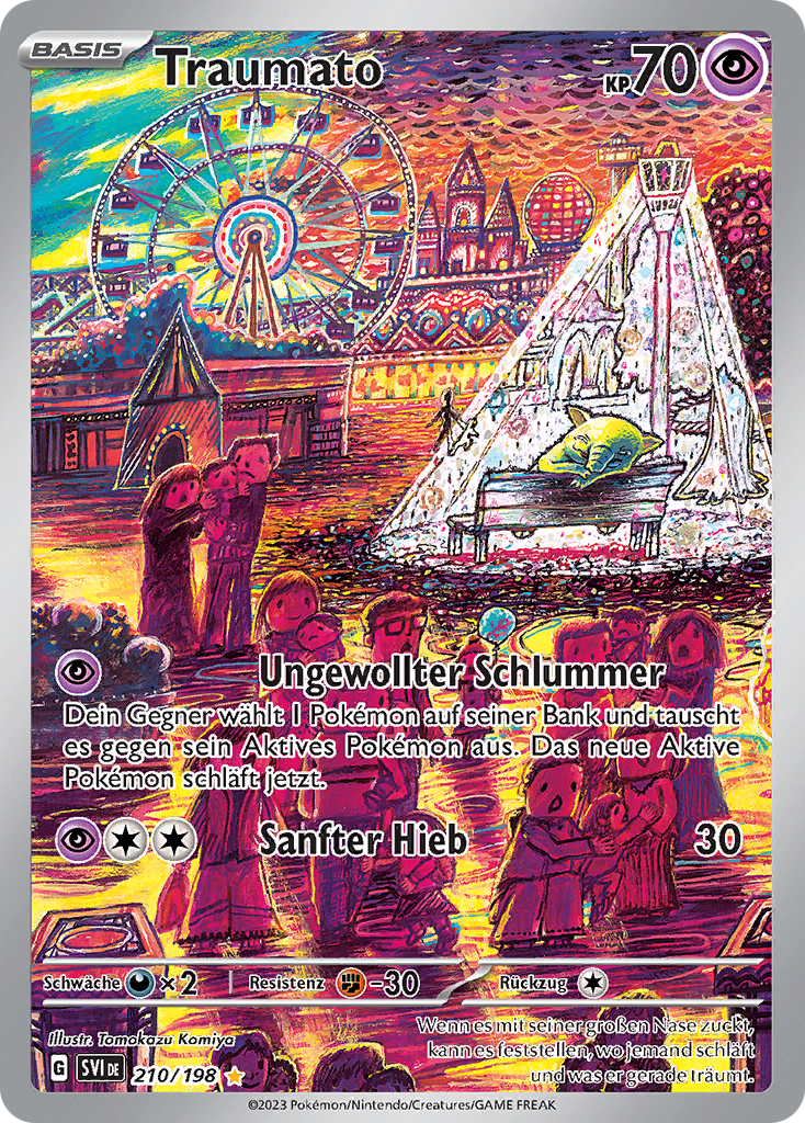 | Kaufen? | Kaufen Sie Ihre Traumato Pokemon-Karte aus dem Karmesin & Purpur-Erweiterung. |