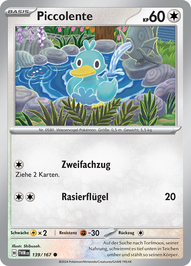 | Kaufen? | Kaufen Sie Ihre Piccolente Pokemon-Karte aus dem Maskerade im Zwielicht-Erweiterung. |