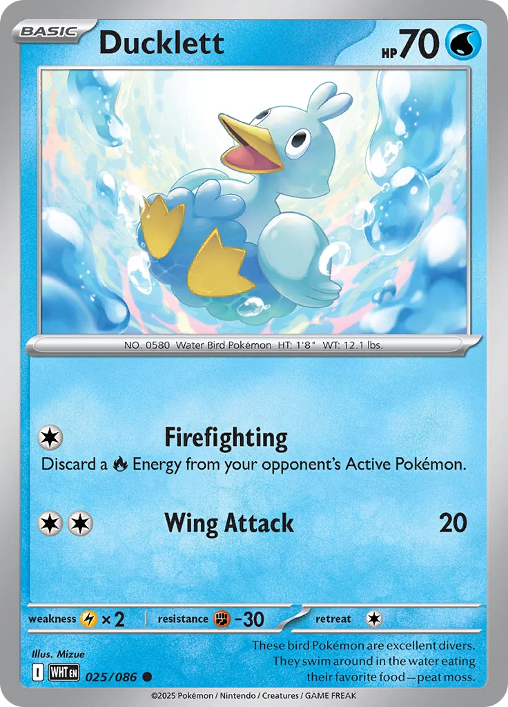 | Kaufen? | Kaufen Sie Ihre Ducklett Pokemon-Karte aus dem White Flare-Erweiterung. |