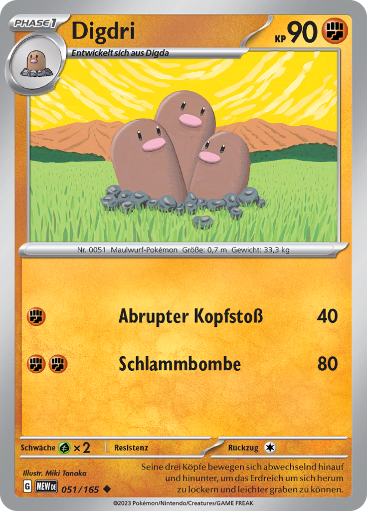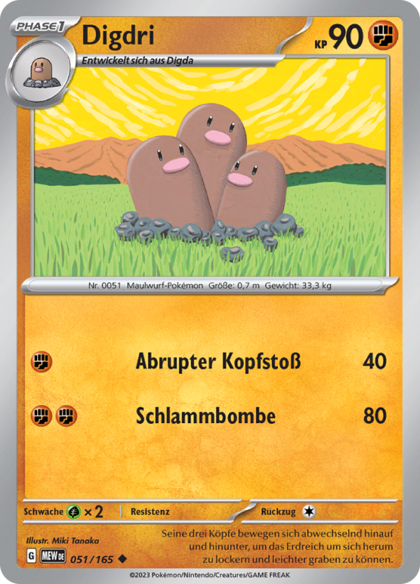 | Kaufen? | Kaufen Sie Ihre Digdri Pokemon-Karte aus dem Pokemon 151-Erweiterung. |