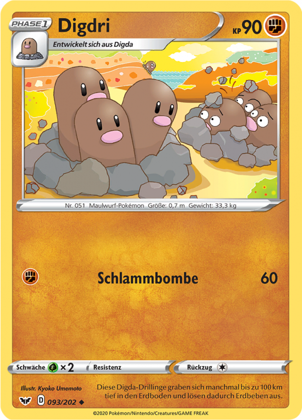 | Kaufen? | Kaufen Sie Ihre Digdri Pokemon-Karte aus dem Schwert & Schild-Erweiterung. |
