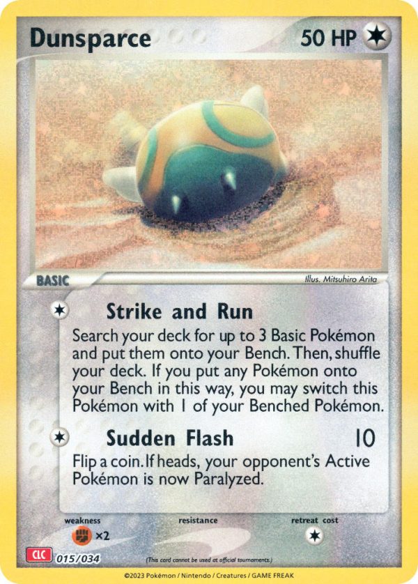 | Kaufen? | Kaufen Sie Ihre Dunsparce Pokemon-Karte aus dem Pokemon TCG Classic - Charizard-Erweiterung. |