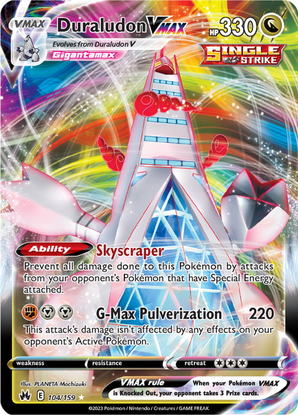 | Kaufen? | Kaufen Sie Ihre Duraludon VMAX Pokemon-Karte aus dem Crown Zenith-Erweiterung. |