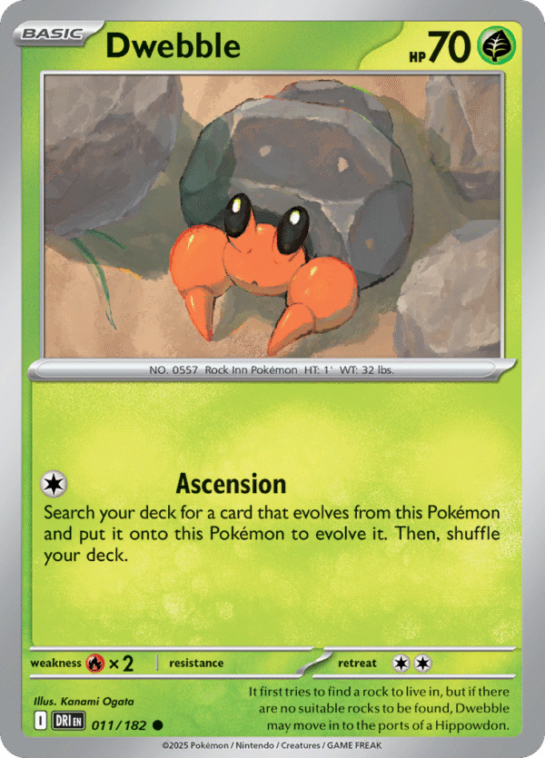 | Kaufen? | Kaufen Sie Ihre Dwebble Pokemon-Karte aus dem Destined Rivals-Erweiterung. |
