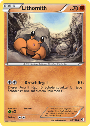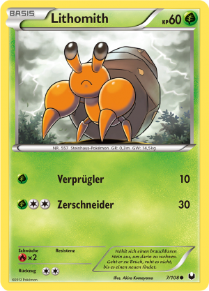 | Alle Karten | Sehen Sie alle Lithomith-Pokémonkarten in einer Übersicht. |