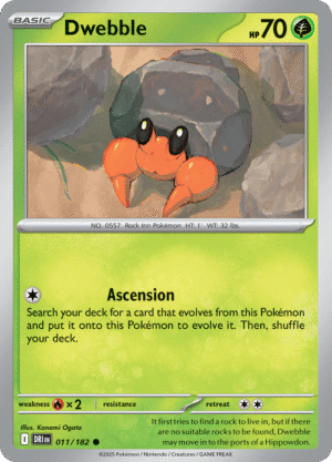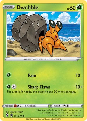 | Kaufen? | Kaufen Sie Ihre Dwebble Pokemon-Karte aus dem Noble Victories-Erweiterung. |