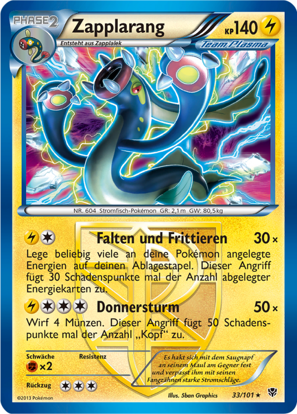 | Karten | Plasma-Blaster besteht aus 105 Pokémon Karten. |