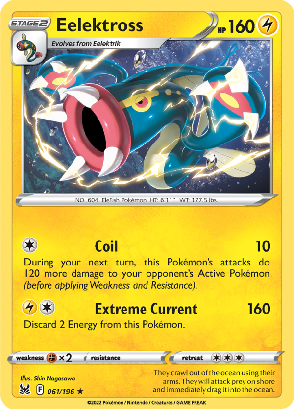 | Kaufen? | Kaufen Sie Ihre Eelektross Pokemon-Karte aus dem Lost Origin-Erweiterung. |