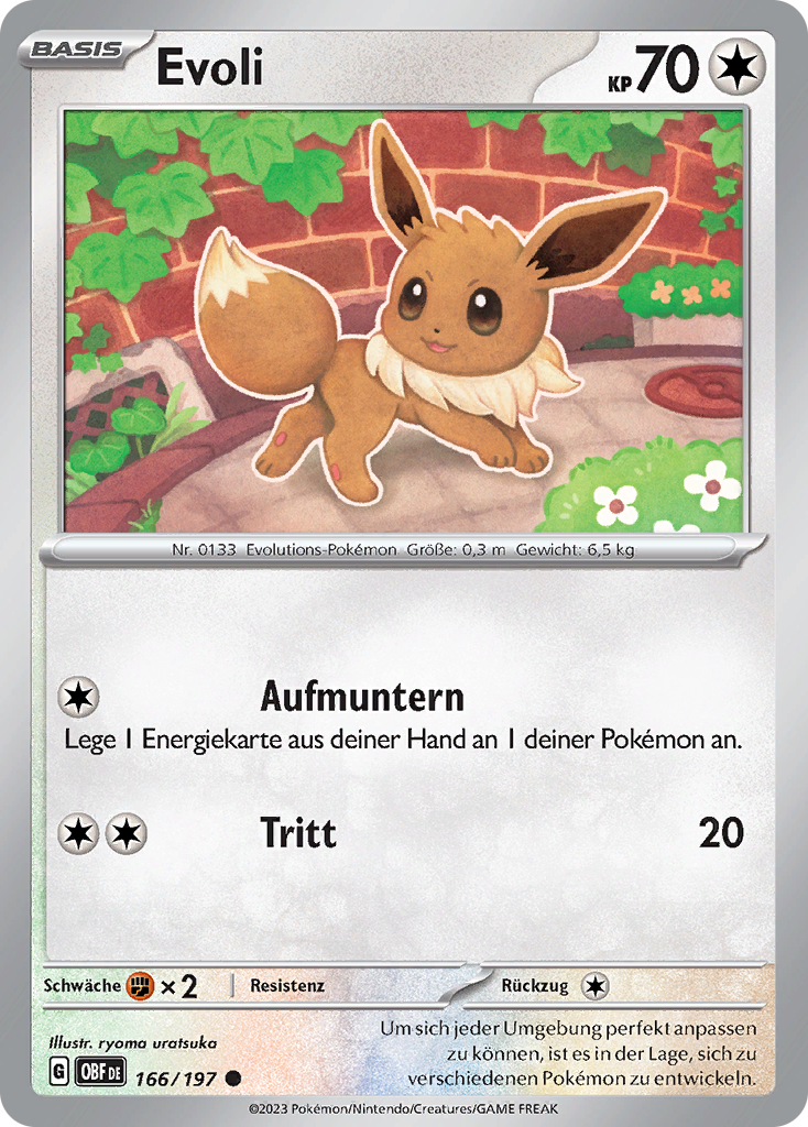 | Kaufen? | Kaufen Sie Ihre Evoli Pokemon-Karte aus dem Obsidianflammen-Erweiterung. |