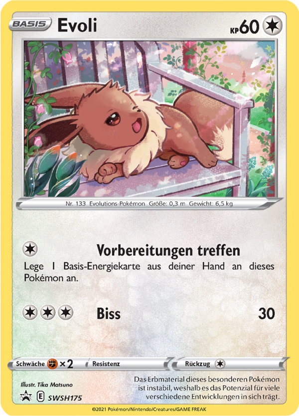 | Kaufen? | Kaufen Sie Ihre Evoli Pokemon-Karte aus dem Schwert & Schild Promos-Erweiterung. |