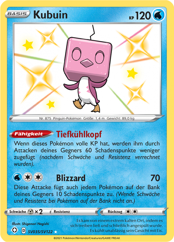 | Kaufen? | Kaufen Sie Ihre Kubuin Pokemon-Karte aus dem Glänzendes Schicksal - Schillernde Schatzkammer-Erweiterung. |