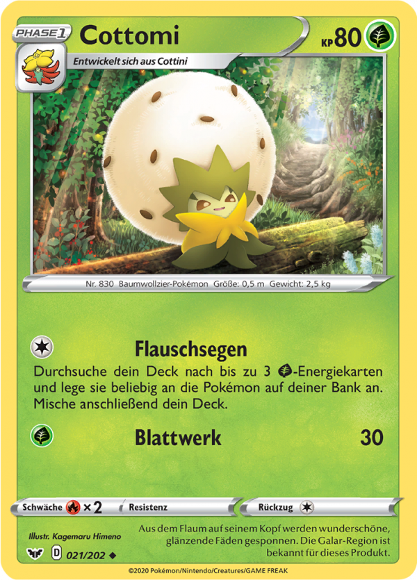 | Kaufen? | Kaufen Sie Ihre Cottomi Pokemon-Karte aus dem Schwert & Schild-Erweiterung. |
