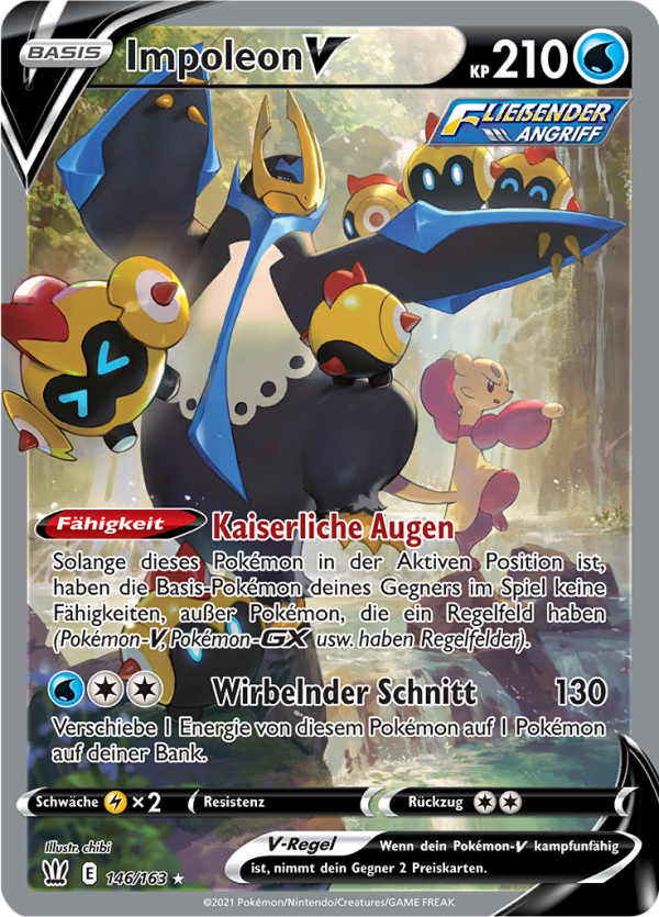 | Kaufen? | Kaufen Sie Ihre Impoleon V Pokemon-Karte aus dem Kampfstile-Erweiterung. |