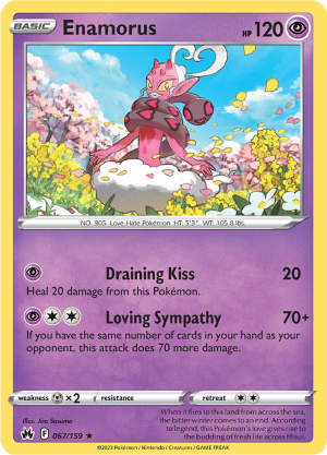 | Kaufen? | Kaufen Sie Ihre Enamorus Pokemon-Karte aus dem Twilight Masquerade-Erweiterung. |
