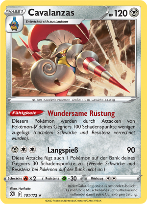 | Kaufen? | Kaufen Sie Ihre Cavalanzas Pokemon-Karte aus dem Reisegefahrten-Erweiterung. |