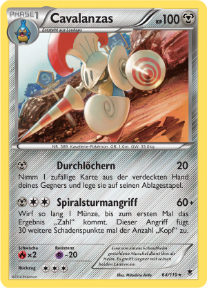 | Kaufen? | Kaufen Sie Ihre Cavalanzas Pokemon-Karte aus dem Aufziehen der Sturmröte-Erweiterung. |