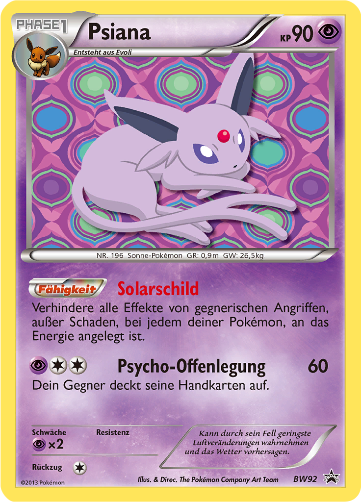 | Kaufen? | Kaufen Sie Ihre Psiana Pokemon-Karte aus dem Schwarz & Weiss Promos-Erweiterung. |