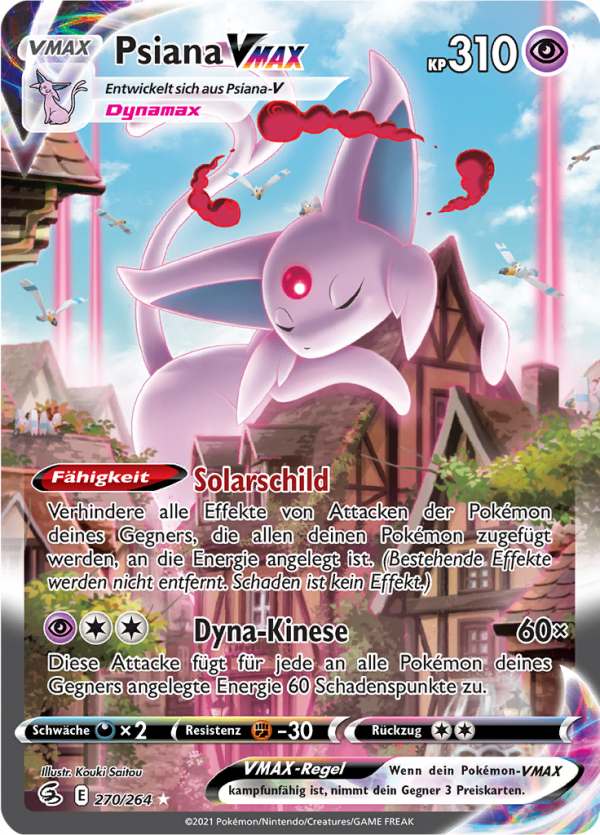 | Kaufen? | Kaufen Sie Ihre Psiana VMAX Pokemon-Karte aus dem Fusionsangriff-Erweiterung. |