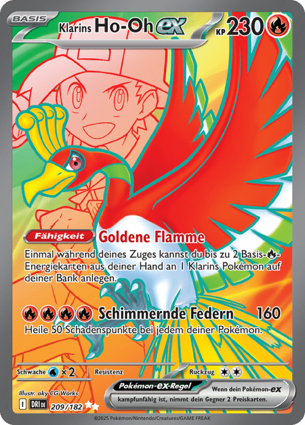 | Kaufen? | Kaufen Sie Ihre Klarins Ho-Oh-ex Pokemon-Karte aus dem Ewige Rivalen-Erweiterung. |