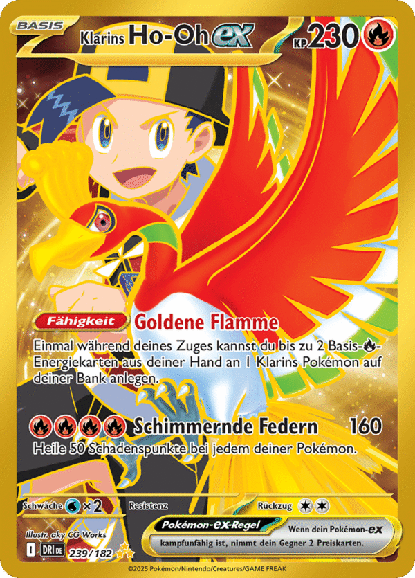 | Kaufen? | Kaufen Sie Ihre Klarins Ho-Oh-ex Pokemon-Karte aus dem Ewige Rivalen-Erweiterung. |