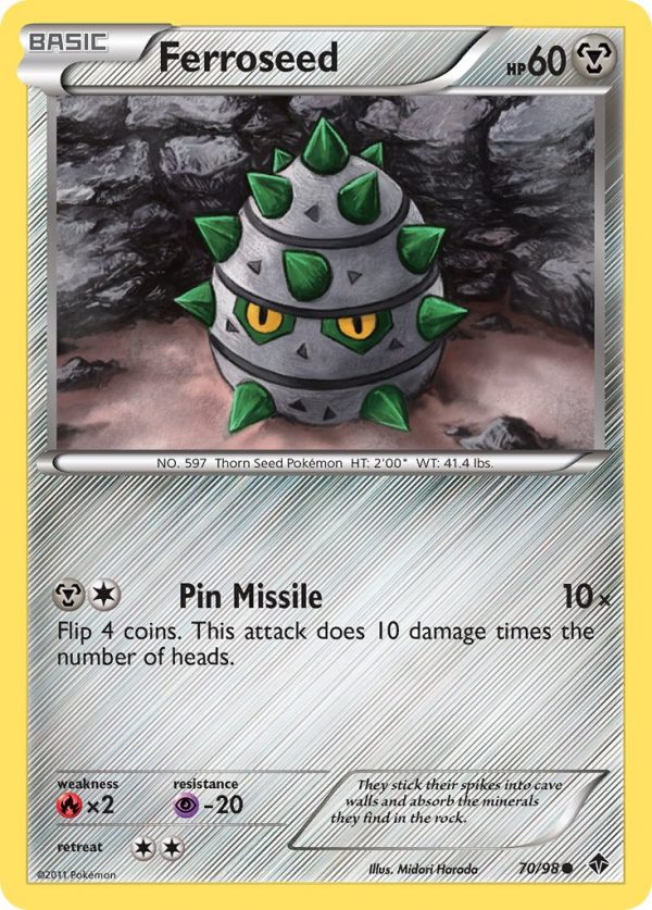 | Kaufen? | Kaufen Sie Ihre Ferroseed Pokemon-Karte aus dem Emerging Powers-Erweiterung. |
