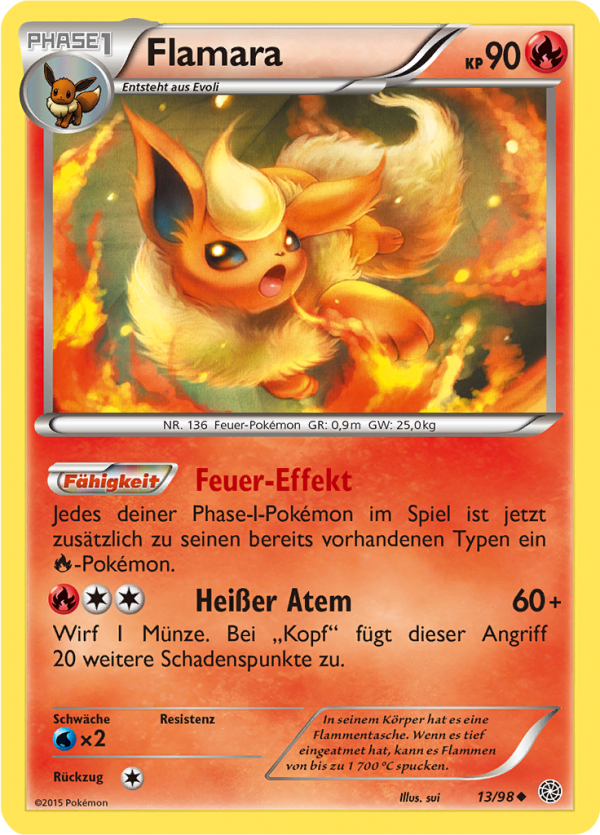 | Kaufen? | Kaufen Sie Ihre Flamara Pokemon-Karte aus dem Ewiger Anfang-Erweiterung. |